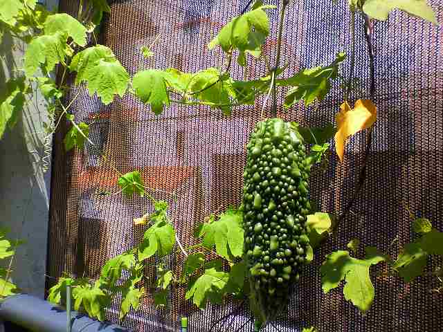 ベランダ菜園のゴーヤも緑が濃くなってきました、もう食べ頃かな?