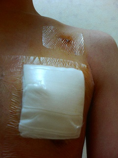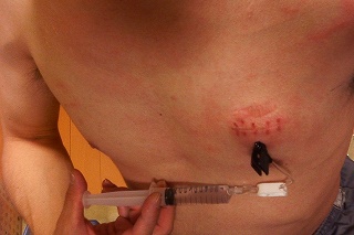 その頃はヒックマンカテーテル式で所謂、鎖骨下からそのままカテーテルが出てるタイプ