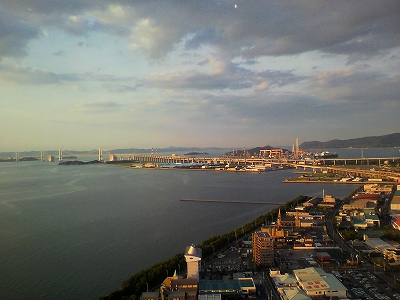 東側に移動すると瀬戸大橋が夕日に染まって綺麗でした