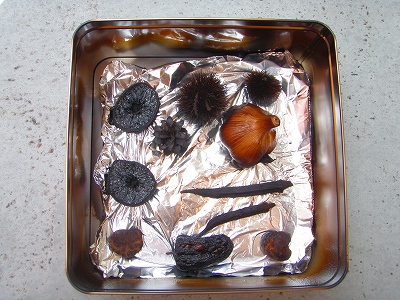 ちゃんと炭になった物だけを箱に入れて出来上がり