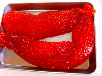 そのままでも良かったがネットで調べて筋子を解しイクラの醤油漬けを作りました