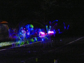 夜は街灯も無いので真っ暗、子供達には夜店などで売っている光る腕輪を着けさせていると何所に居るか直ぐに分かるので良いかも?