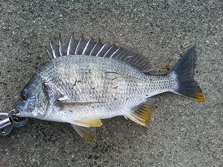 シーバスでないアタリが数回あるけど乗らず・・・どうもチヌっぽいなぁと思いルアーサイズダウンさせたら一発でした