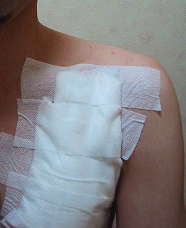 明日の通院まで少し圧迫の為にガーゼを厚めにあててテーピング
