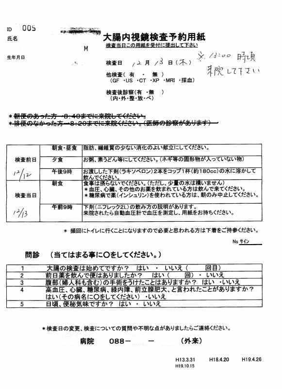 朝9時からニフレック2リットル飲んで昼から病院へ