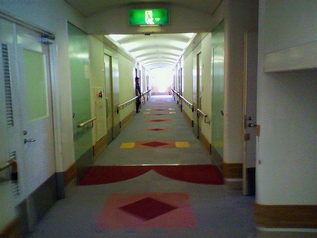 入ってビックリ、廊下が病院のようです